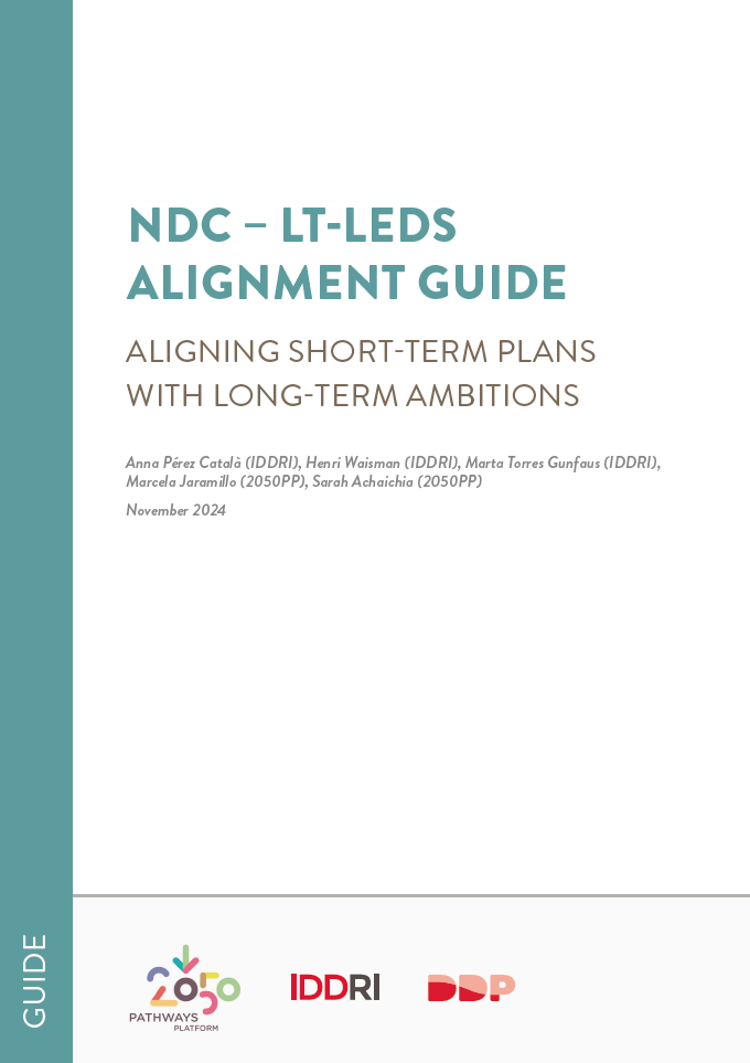 This guide was developed through close collaboration between the 2050 Pathways Platform and the Deep Decarbonization Pathways Initiative (DDP) at IDDRI. In order to help countries achieve alignment of short-term plans with the long-term systemic transformations needed to meet the goals of the Paris Climate Agreement, it provides a practical framework based on the premise that countries can fully understand how their NDCs align with the Paris Agreement only by viewing alignment through the lens of a Long-Term Low Emission Development Strategy (LT-LEDS), which can highlight transformations and actions that might be overlooked in a short-term perspective, expanding the scope of the alignment process. It also also includes four country case studies (Chile, European Union, Morocco, India) presenting real examples of alignment.